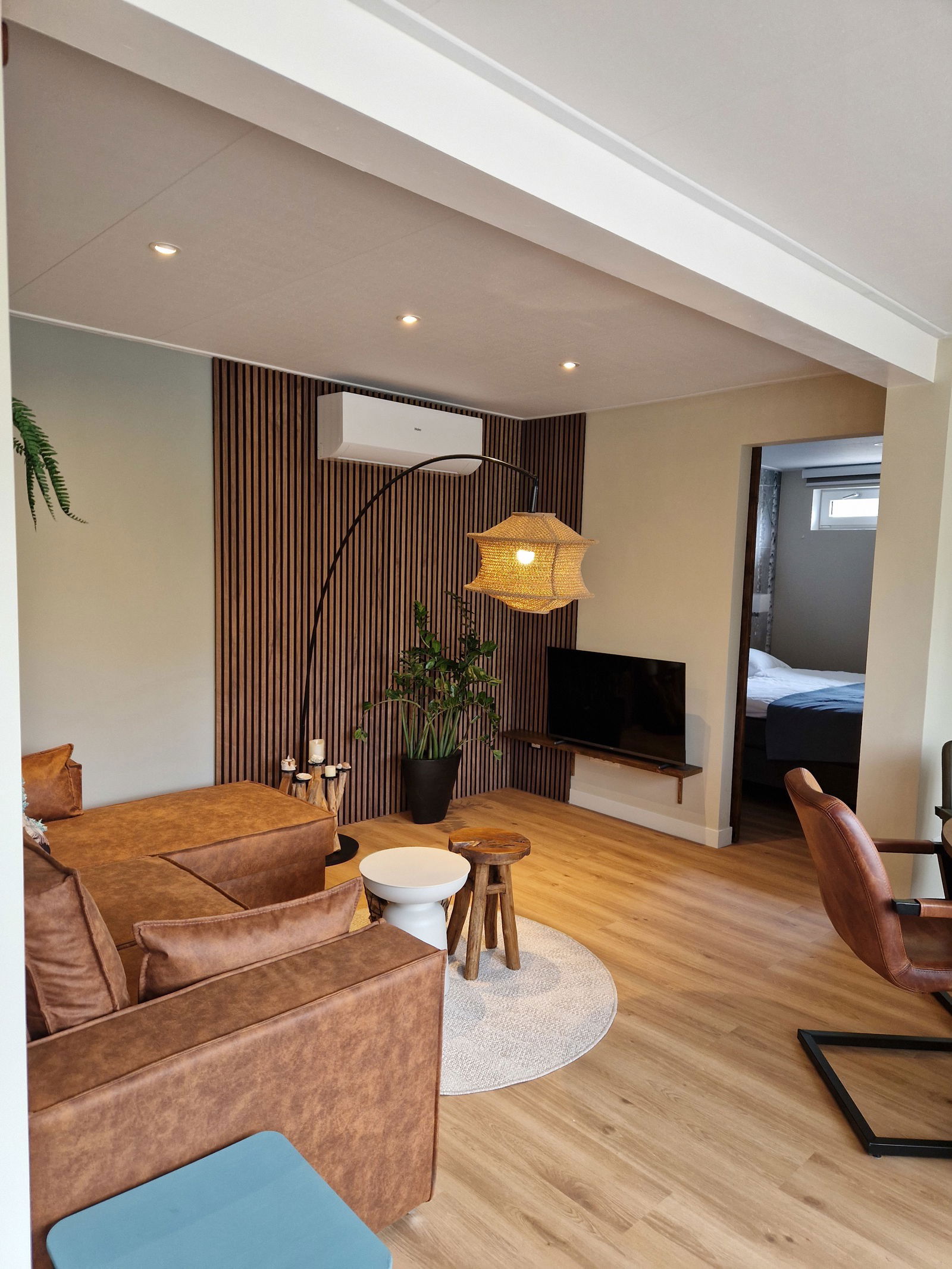Enkele dagen bij jullie geweest en wat een fijne, mooie accommodatie. We voelden ons meteen thuis. Warm en huiselijk ingericht, zelfs met planten. Veel ruimte en alles prima voor elkaar. Ook de keuken was praktisch en compleet ingericht met een bar, waar we 's morgens gezellig de dag starten met ontbijt en koffie. Contact met Edwin en Marieke was goed en erg persoonlijk. Verder de omgeving per fiets verkend, mooie omgeving. Nadien fijn in de tuin gezeten, die prachtig is aangelegd. Ook goede parkeerplek voor de auto en de fietsen konden in het schuurtje. Goede restaurants op loop afstand. Supermarkt om de hoek. We hebben genoten en komen zeker nog eens terug.